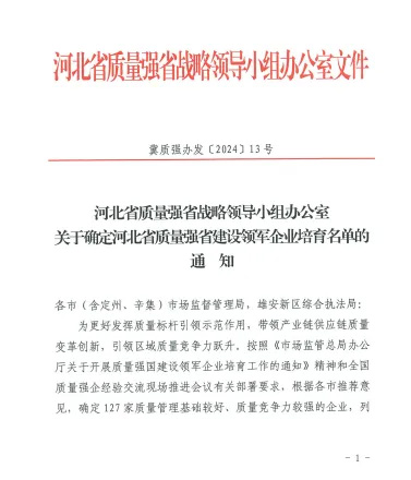 該資質(zhì)旨在更 好發(fā)揮質(zhì)量標(biāo)桿引 領(lǐng)示范作用,帶領(lǐng)產(chǎn)業(yè)鏈供應(yīng)鏈質(zhì)量變革創(chuàng)新,引 領(lǐng)區(qū)域質(zhì)量競(jìng)爭(zhēng)力躍升。入圍該名單標(biāo)志著公司質(zhì)量管理基礎(chǔ)較好,質(zhì)量競(jìng)爭(zhēng)力較強(qiáng),在開展質(zhì)量分析、實(shí)施標(biāo)桿管理,不斷追求卓 越等方面優(yōu)先獲得資源支持,助力企業(yè)不斷提高質(zhì)量管理水平和質(zhì)量競(jìng)爭(zhēng)力。